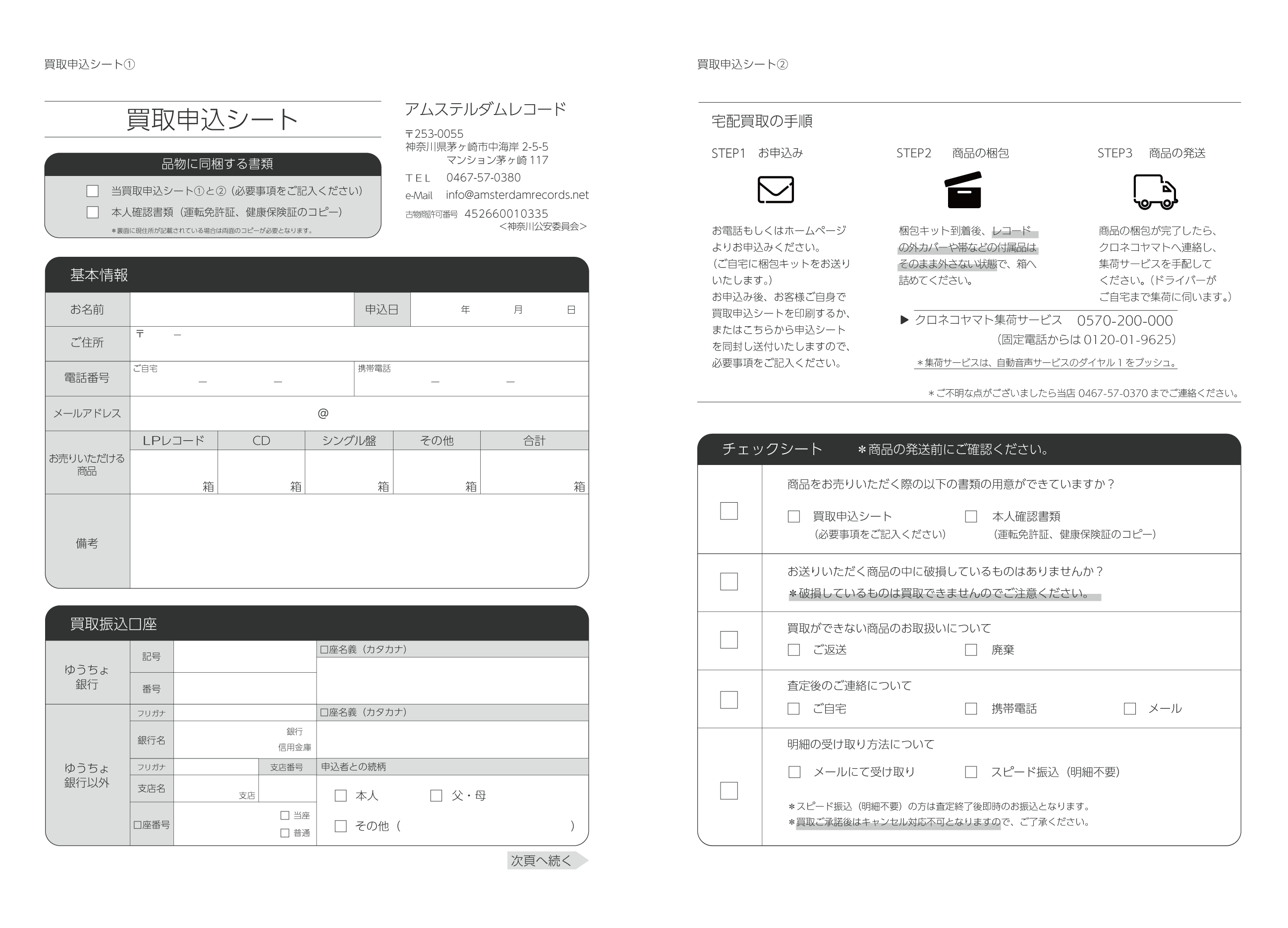 神奈川県茅ヶ崎市にあるレコードショップ「アムステルダムレコード」がレコード買取を依頼される際に使用する「買取申込シート」をリニューアルデザイン。